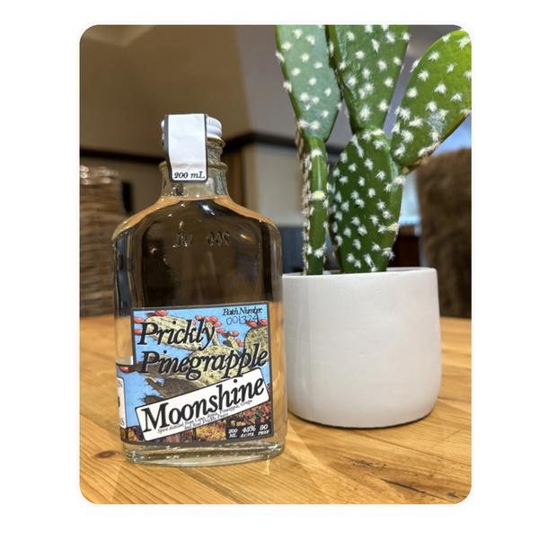90P Moonshine distilled in-house from Prickly Pears, Pineapples, Grapes, Apples and Cane. Pairs well in the "Prickly in Pink" cocktail. Did you know, the Prickly Pear is the State Plant of Texas?