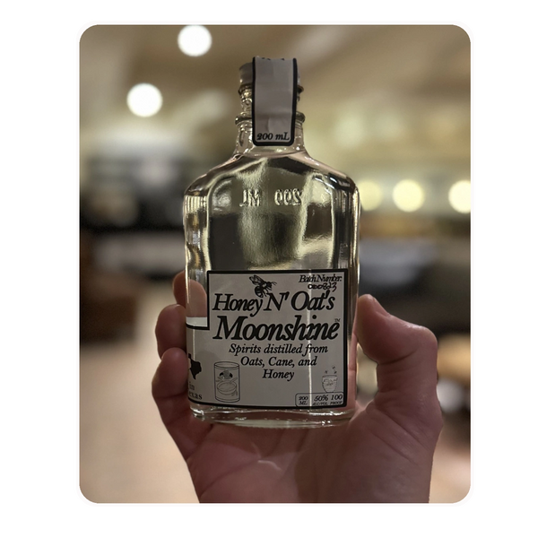 A mash bill of Oats, Honey, and Cane. A simple formula with a simple flavor. This product is solely produced using locally grown oats at Lawrence Farms in Pottsboro, Texas.. and, are currently looking to source a local honey supply as well.